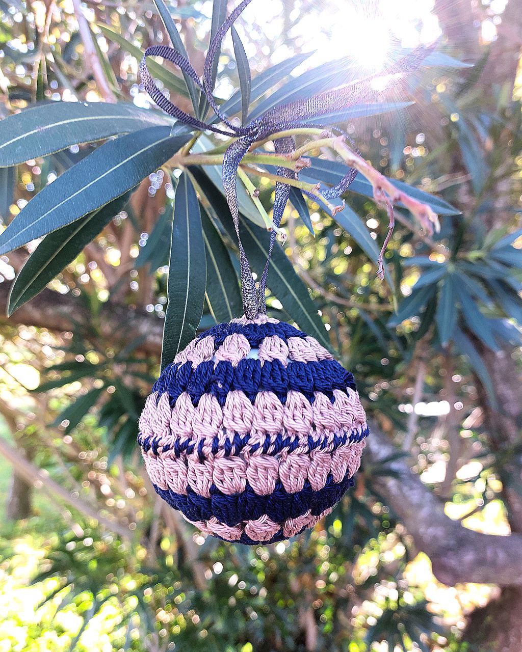 Ogni pallina è realizzata interamente a mano in filo di cotone o cotone misto lurex, ed appartiene a una tiratura estremamente limitata. È disponibile in 8 combinazioni di colore: puoi acquistarne una singola, il set completo da 8 o la tua combinazione personalizzata.