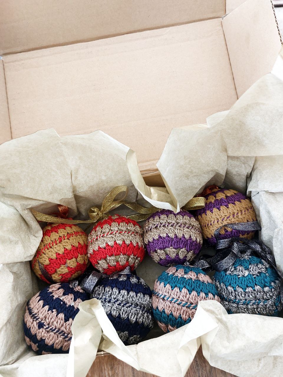 Maria Set - 8 Palline di Natale all’uncinetto – Edizione limitata